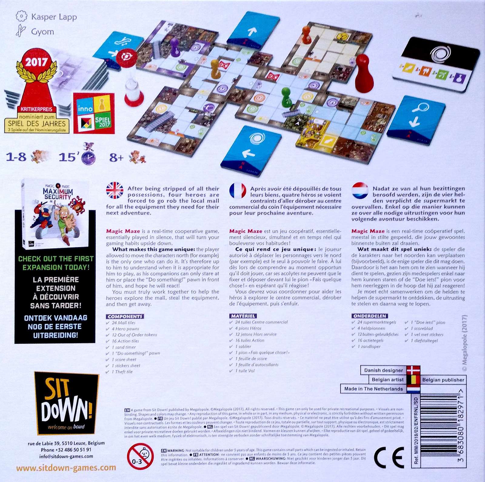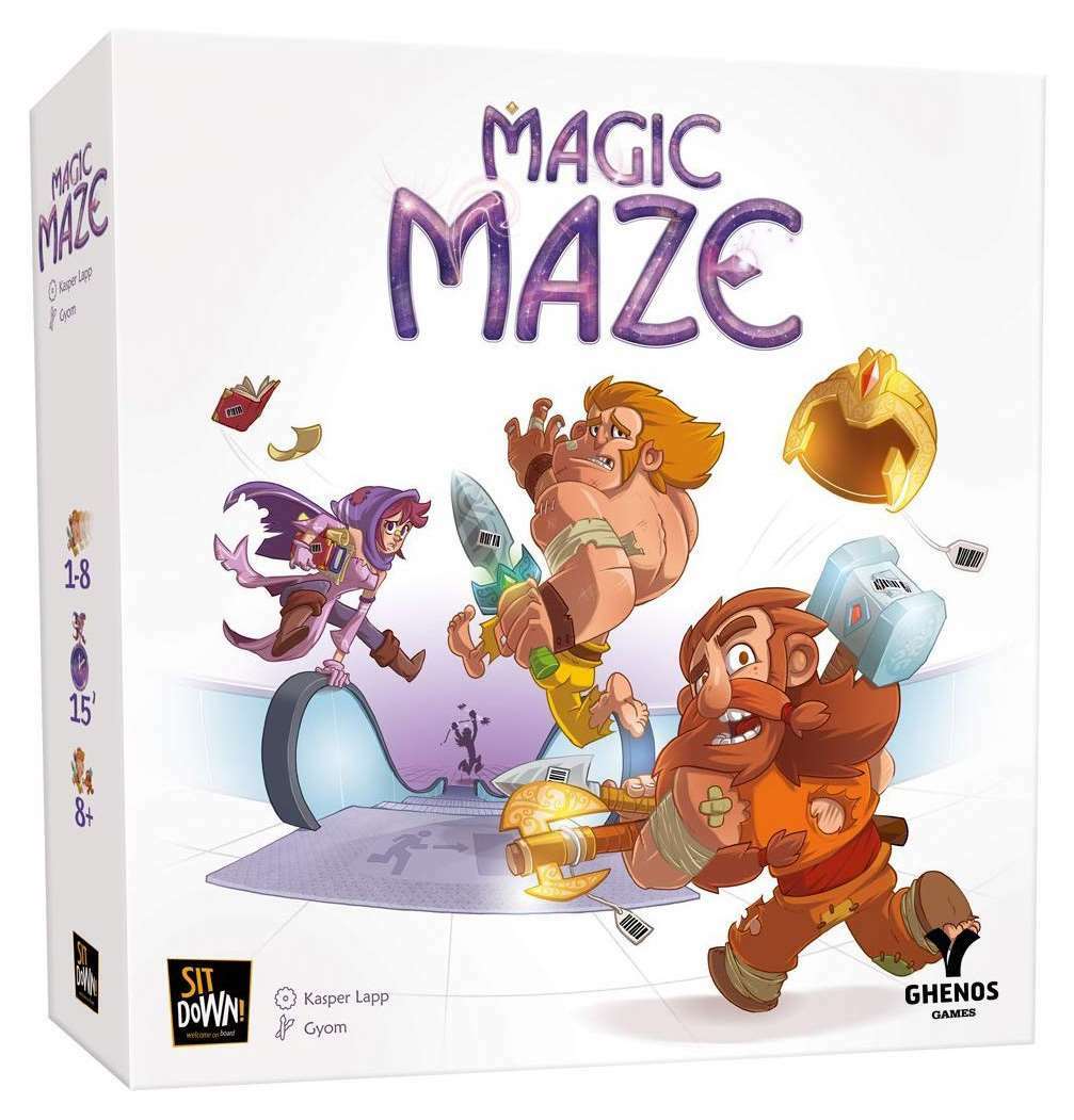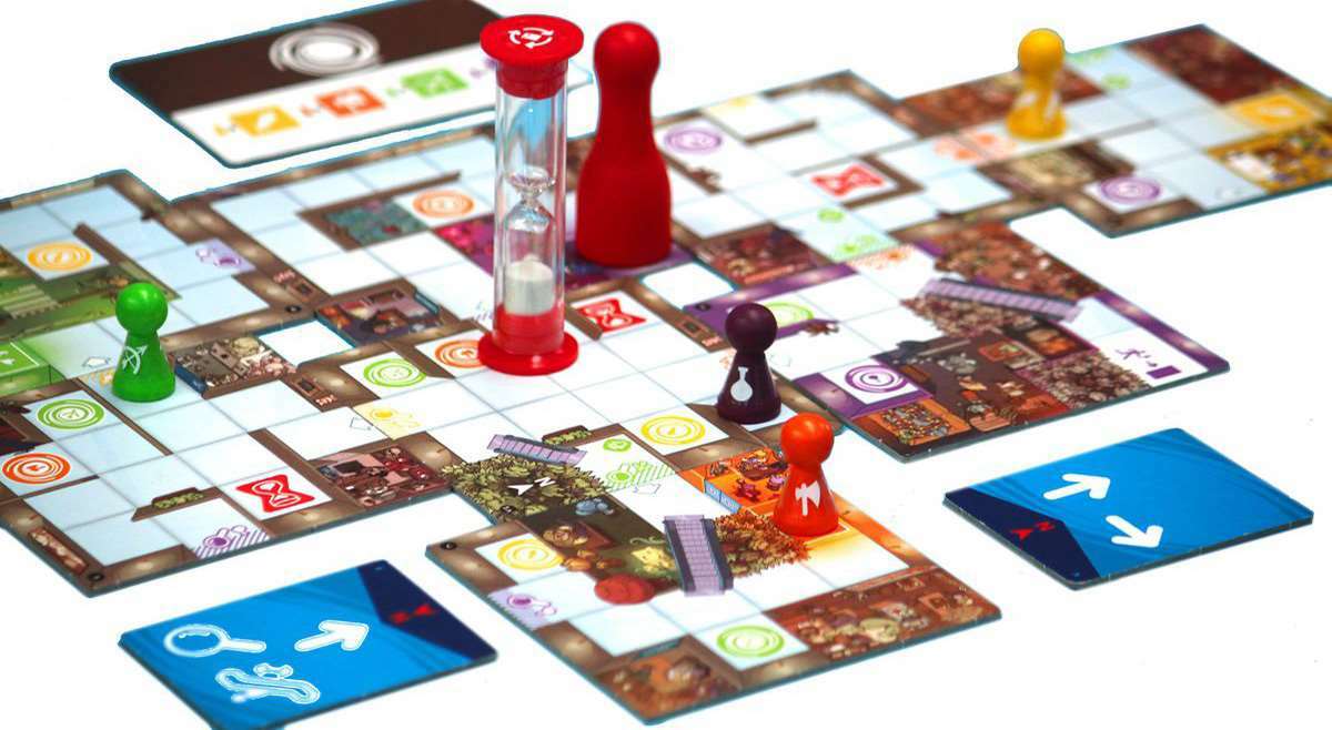 «Magic Maze» во многих смыслах очень необычная настольная игра. Во-первых в нее играют молча, а во-вторых, здесь отсутствует понятие отдельного хода. Игровое поле, которое формируется в процессе игры, представлено в начале одним тайлом – холлом супермаркета, на котором размещены четыре фишки, представляющие каждого из героев. Задача игроков, отвести все четыре фишки в соответствующие им по цвету магазины, а затем, вывести их через выход прочь из супермаркета. Каждый из игроков получает специальную плашку действия, на которой указано направление, в котором можно передвигать фишку, а также может быть указано особое действие, которое эта фишка может совершить.