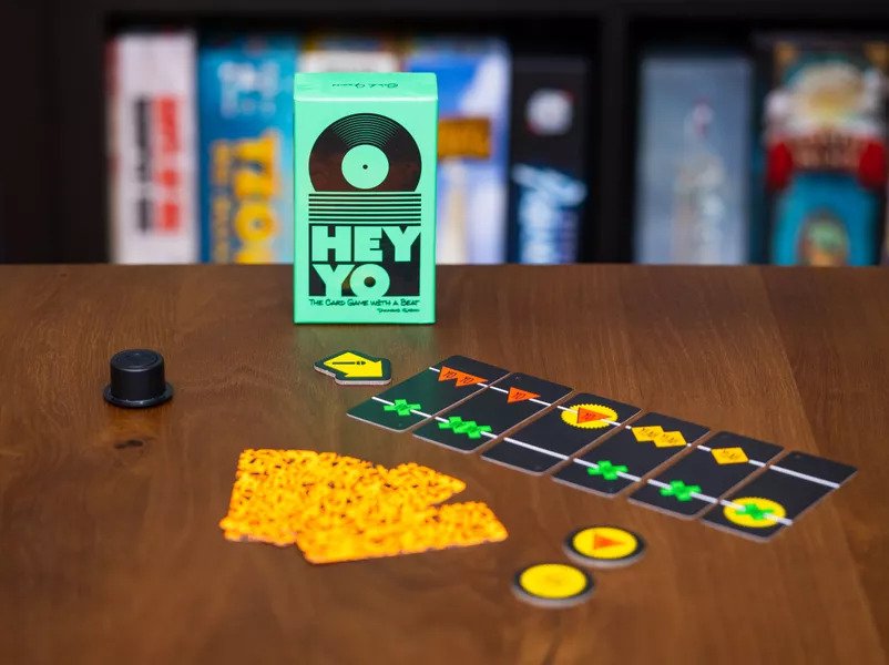 В Hey Yo вы все составляете с помощью карт общую музыкальную таблицу, чтобы содать идеальный ритм и заработать очки. Игра включает в себя небольшое звуковое устройство, которое вы можете использовать для сопровождения игрового процесса, при этом игрокам необходимо играть в карты, когда музыка указывает на это (в ритм мелодии).