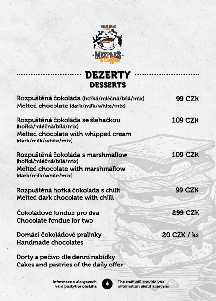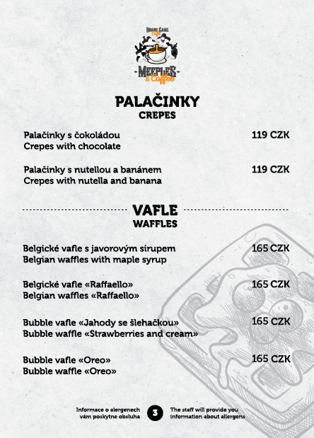 Meeples & Coffee — это тематическое кафе для настольных игр в красивой старинной части центра Праги. Здесь можно насладиться вкусными завтраками из разных стран, выпить кофе и горячий шоколад, поиграть с друзьями в настольные игры и провести время в прекрасной атмосфере.